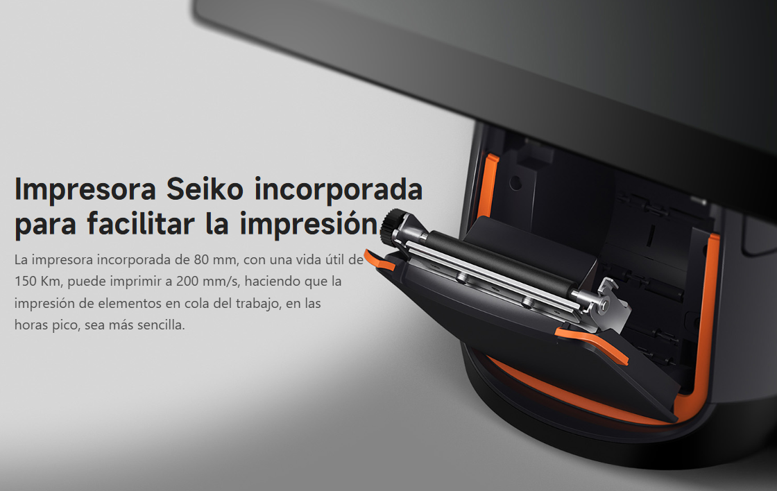 Impresora integrada: térmica de 80 mm con cortadora automática y velocidad de impresión de 200 mm/s
